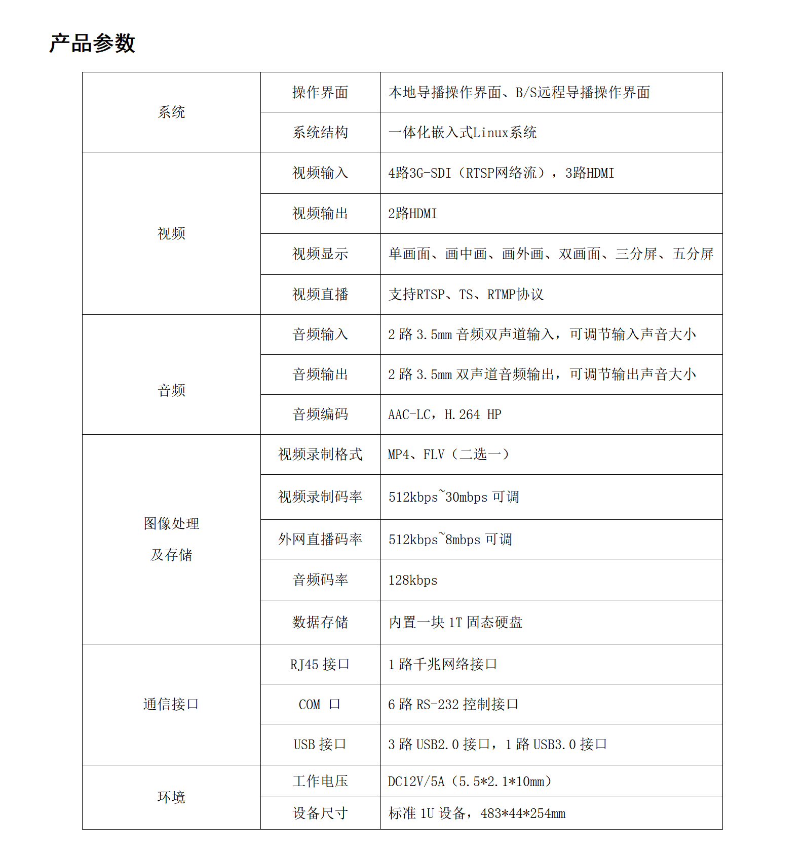 节目录制:支持超高清全4K视频处理和多协议视频直播,适用于电视节目、新闻直播等场景的录制和直播。