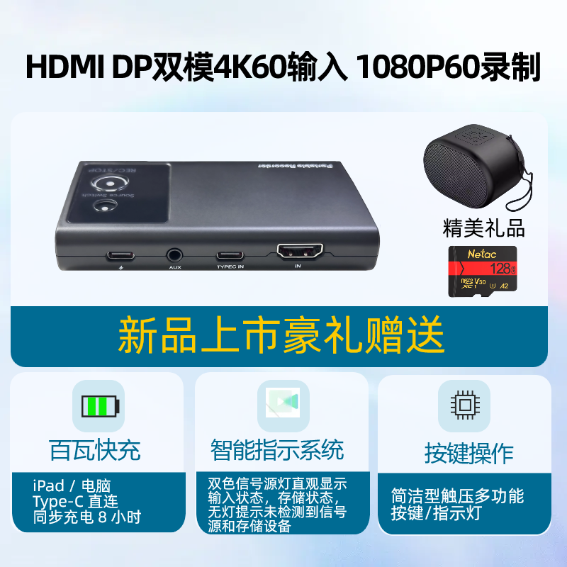 4K 输入转 1080P 降低存储负载,确保长时间稳定录制;智能屏蔽电脑访问冲突,录制中数据 0 干扰;套装含医疗级抗干扰 C to C 线材,杜绝信号衰减。