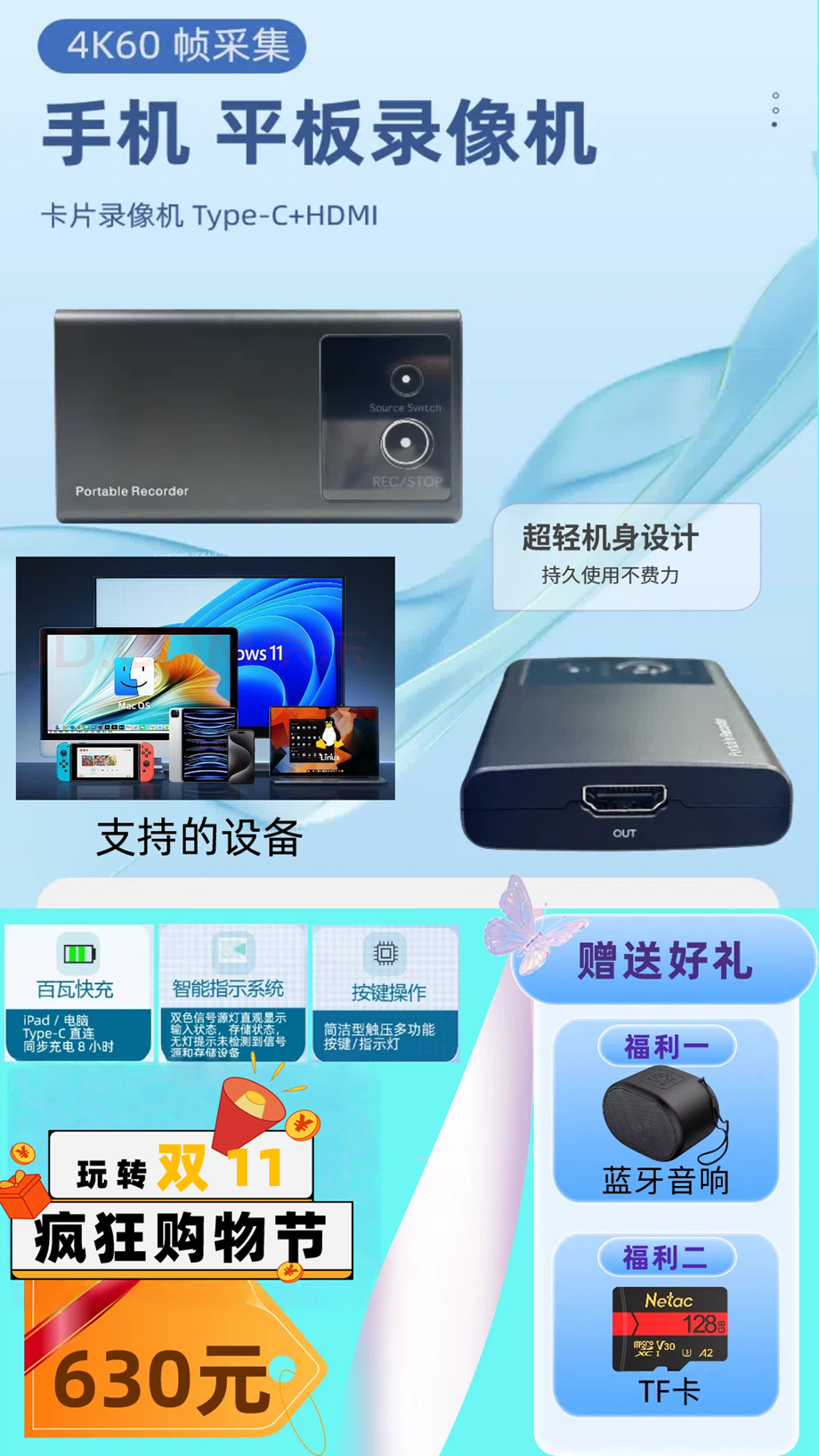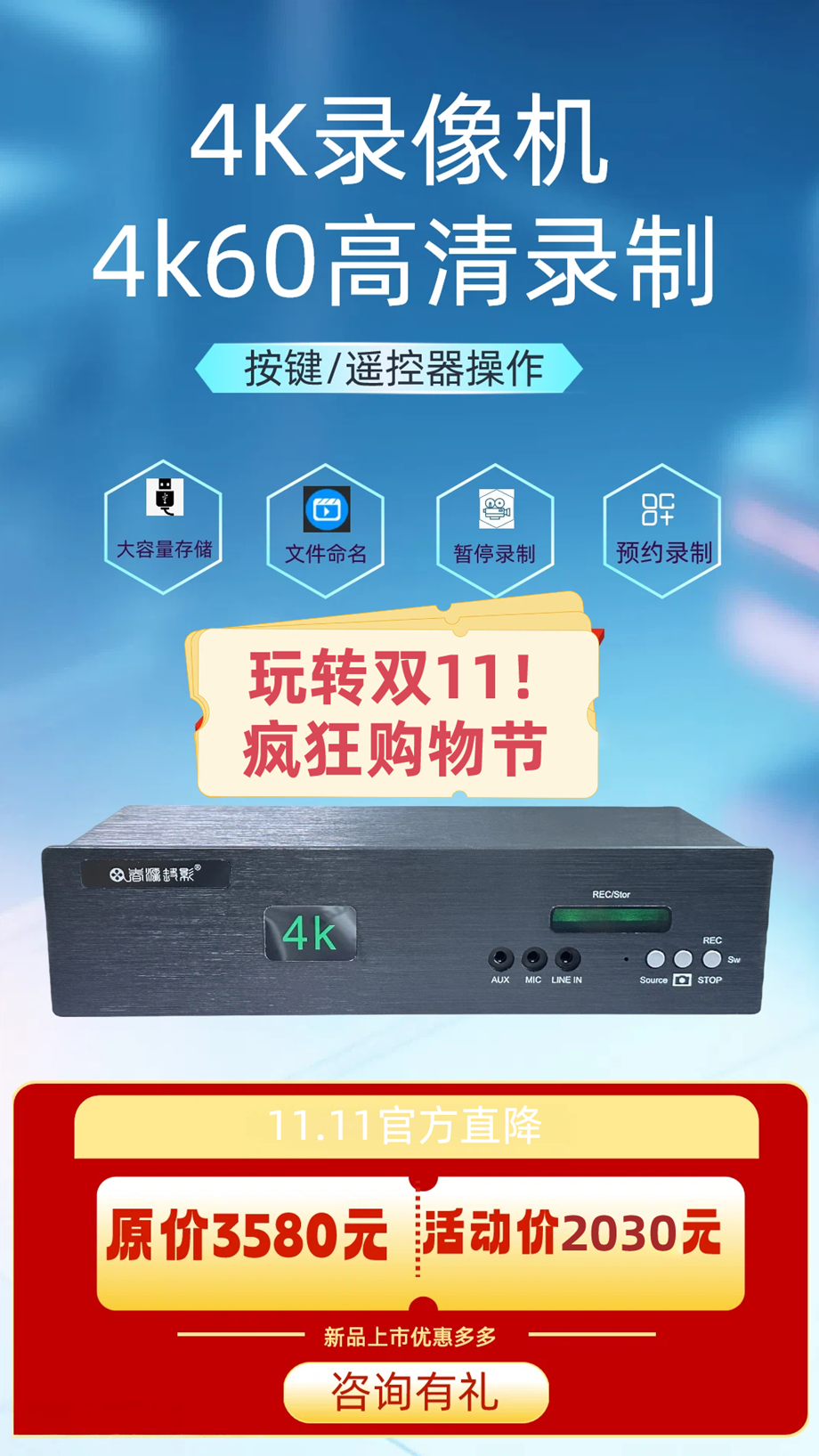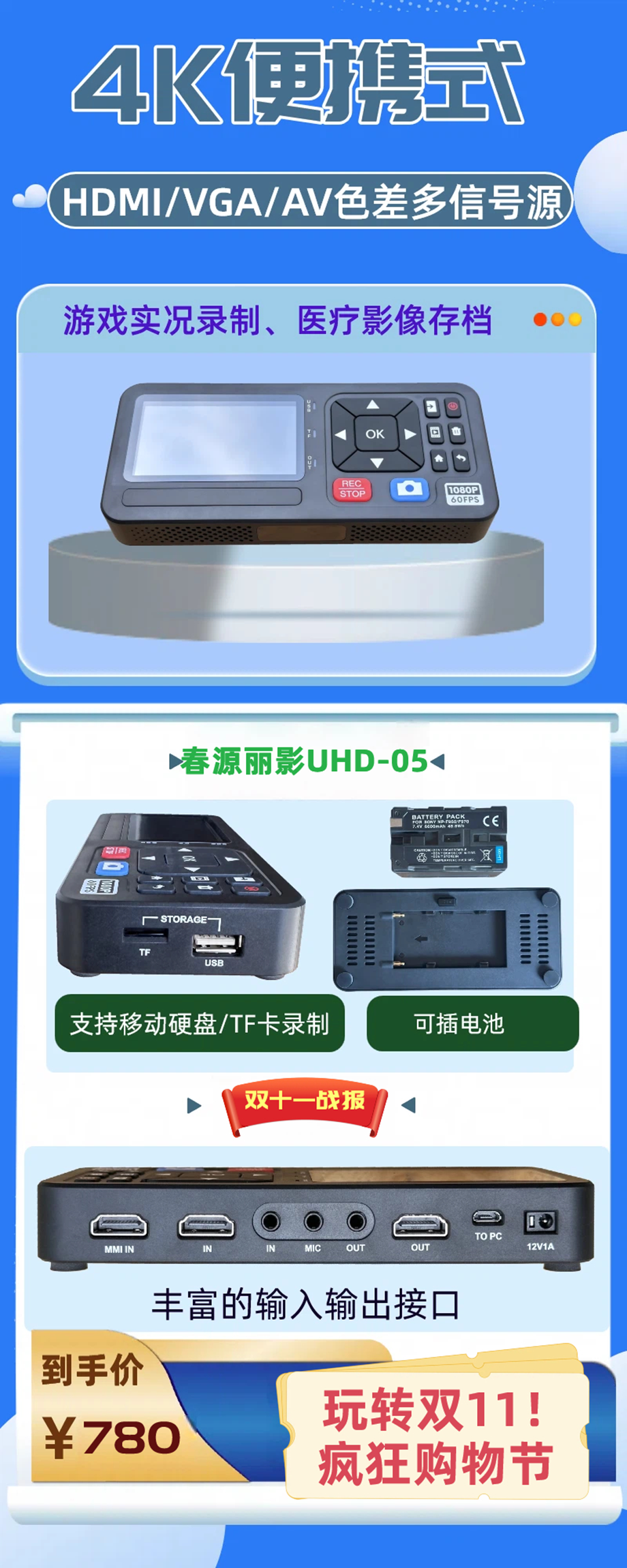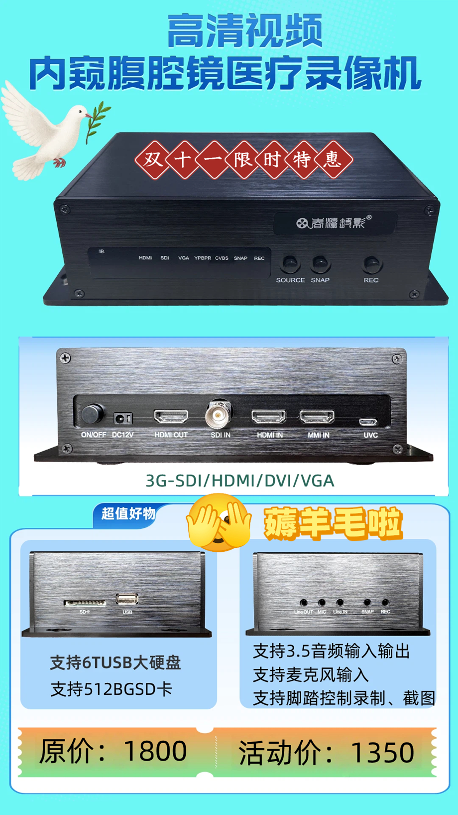 双十一疯狂购物节再次来临!为回馈新老嘉宾,深圳春源丽影电子科技有限公司,将广大个人高清粉丝以及医疗机构最为常用的8款高清录像机产品,推出了超低价特惠方案!产品涵盖了单接口机、多接口机、带屏机、微型机等型号。推出型号多、针对性强、价格超低、时间跨度长,真正体现了春源丽影让利与客的惠民原则!