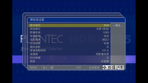 视频解析度720x480I,720x576I,720x480P,720x576P,1280x720P,1920x1080I,1920x1080@24P。支持 FULL HD录影(1080i高画质数位电视模式或1080@24P电影模式)、支持 AVCHD(H.264)录影格式与MPEG-1 LAYER-II立体声录音格式、相容 HDMI与 HDCP;硬盘系统FAT32、支持数位相框播放功能。