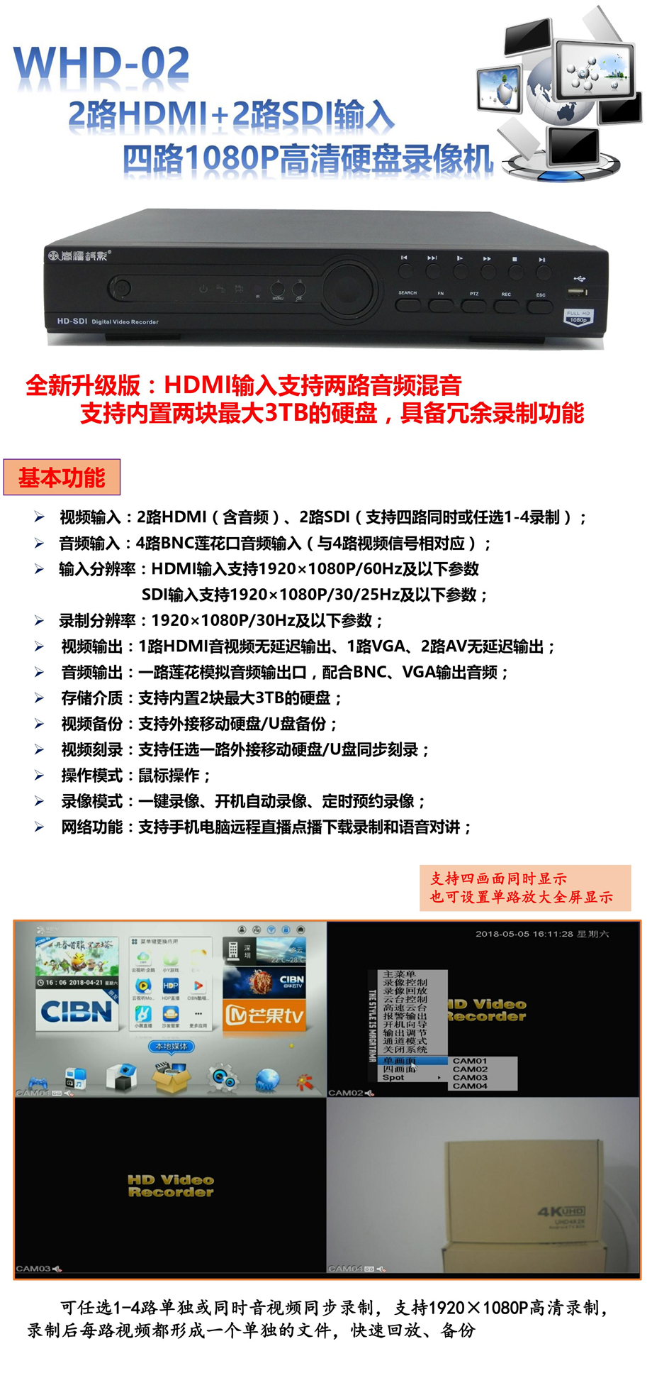 2路HDMI2路SDI输入高清硬盘会议录播机
