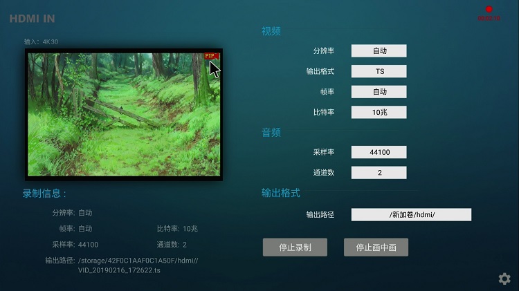 该机可以根据输入设备自由选择输入录制分辨率,有自动、4K、1080P、720P多项选择。录制格式有TS、MP4两种格式任选。录制帧率可以自适应。录制比特率可以在1-10之间任选。音频采样率在8000乃至40000以上随意选择。录音通道有1、2两种选项。无论是内置硬盘还是外接硬盘,均可随意选择录像存储路径。