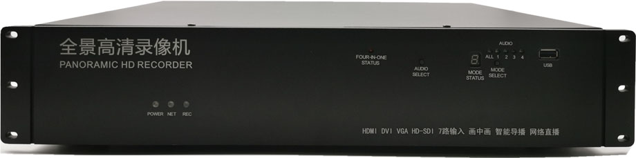 全景高清录播机,既适合用于中大型会议室录像,也可用于教学培训录制、内窥手术录制、法庭审讯录制、远程直播录制。该机代表了高清录播机的行业潮流,是目前会议录播机中的领航级产品!