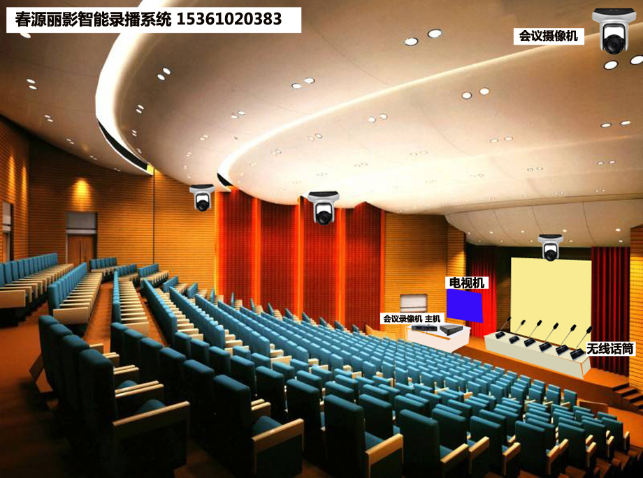 综上所述,根据会议室面积大小以及具体需要,配置多个自带云台能高倍变焦的具有HDMI输出接口的1080P60hz的高清会议摄像机、使用具有多个HDMI输入接口能多路同时录像具有混音功能的高清会议录播机尤其是使用全景高清录播机,联机配置春源丽影公司开发的全向麦克风、或者无线智能麦克风会议主机,就可以理想的实现高清会议录像的目的。该套方案,安装简单、配置方便,操作简易,而且投资少,具有十分高的性价比!