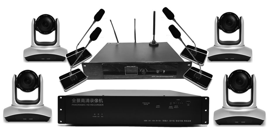 一般30-50平米的小型会议室,配置一台12倍或者20倍的摄像机就可以全景扫描拍摄。60-100平米的会议室,则要配置2-4台12-20倍的相机多角度拍摄;100平米以上的会议室,则要配置至少4个20倍的高清摄像机相互搭配补充拍摄。