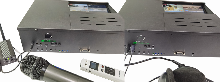 HDT103不仅支持4路视频含有的音频输入,也支持另外输入线路音频或者麦克音频与输入的视频进行同步录制。当输入的视频有音频时,可以另外输入音频进行混音。当输入的视频没有音频时,就另外输入音频配音录制。该功能的实现,不仅支持本地会议音视频同步录制,也支持录制视频会议终端设备时,既能录制远方过来的通过HDMI输入的音频,也支持输入本地的音频,实现多方音视频同步录制。本机配送的遥控器,支持HDMI输入增加音量、缩小音频、一键静音功能;支持麦克话筒输入的音频,增加音量、缩小音频、一键静音功能。