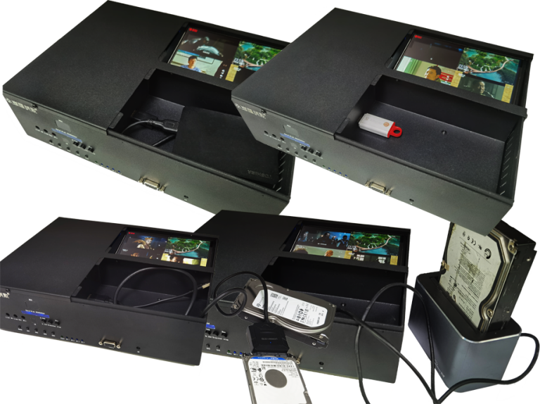 HDT103通过硬盘仓的USB接口,可以插入移动硬盘、U盘、SATA转硬盘芯、3.5寸硬盘座进行录像,最大支持到6TB。NTFS格式,每录制16GB、3-4小时左右自动分段;FAT32格式,每录制4GB停止录像。