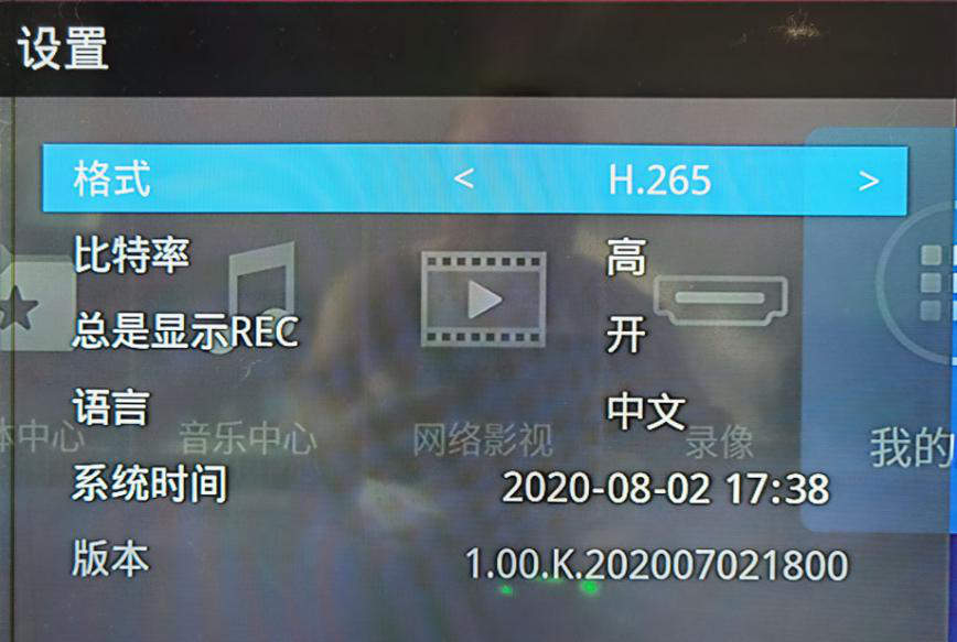 通过录像遥控器不仅可以操作录像、截图、调节HDMI输入的以及3.5音频口输入的音量高低,还可以一键查看机器的输入、输出参数信息;可以一键进入菜单栏目,进行码流的高/低选择、H265/H264的选择、语言选择、时间设置等操作。