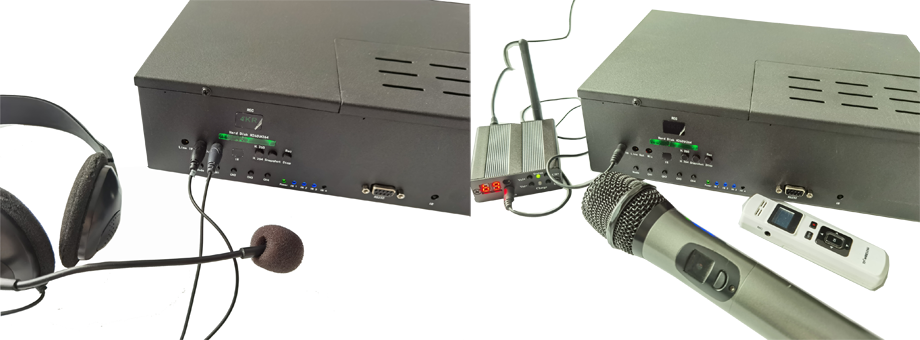 HDT103不仅支持4路视频含有的音频输入,也支持另外输入线路音频或者麦克音频与输入的视频进行同步录制。当输入的视频有音频时,可以另外输入音频进行混音。当输入的视频没有音频时,就另外输入音频配音录制。该功能的实现,不仅支持本地会议音视频同步录制,也支持录制视频会议终端设备时,既能录制远方过来的通过HDMI输入的音频,也支持输入本地的音频,实现多方音视频同步录制。本机配送的遥控器,支持HDMI输入增加音量、缩小音频、一键静音功能;支持麦克话筒输入的音频,增加音量、缩小音频、一键静音功能。