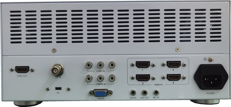 UHD-10高清录像机,具有4个HDMI输入接口,还分别有1个3G-SDI、VGA、CVBS、色差输入接口;有2个音频输入接口,1个HDMI输出接口,1个音频输出接口。有一个迷你USB接口连接电脑使用。有1个2.0 USB接口和SD卡插槽,支持插入USB移动硬盘或者SD卡录像,录像分辨率为MP4格式1080P60高清视频。支持一键截图,视频回放,支持面板按键、遥控器、脚踏控制器操控。支持亮度、饱和度、色差调整,支持录制画质、文件大小调整,支持定时预约录制。