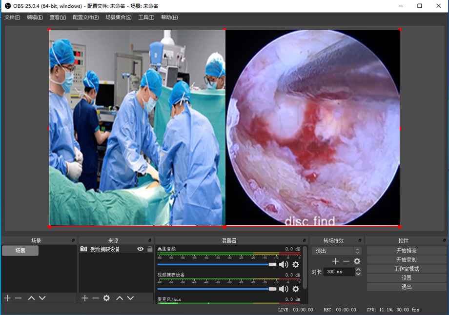 在OBS软件打开视频捕获设备,即可将UHD-10显示的画面在OBS中间显示框清晰显示出来。