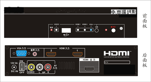 春源丽影HDT-3由于具有VGA、两路HDMI输入端子,支持必须连接具有VGA输出端子的高清录像。
