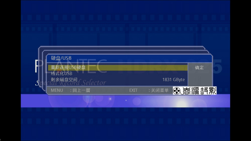 高清数字电视机顶盒的连接:用HDMI高清线,从机顶盒的HDMI输出接口,连接到HDT-3的两路HDMI输入接口的其中一个接口,再用HDMI线从HDT-3的HDMI输出接口连接到液晶电视机的HDMI输入接口。将U盘或者移动硬盘通过USB线插入HDT-3前面板的USB接口。将HDT-3的专用电源适配器插好。打开数字电视机顶盒,开开液晶电视机,打开HDT-3后面的电源开关。这时,电视机首先显示HDT-3的系统代号825的开机界面,然后提示允许USB设备接入,则连接正常。 老式AV输出电视机顶盒的连接:连接方式与HDMI基本相似,就是用随机送的红白黄AV线,从机顶盒的红白黄输出端子连接到HDT-3的红白黄输入端子,只要颜色对应就好。 VGA输出的台式电脑的连接:用随机送的VGA线插入电脑的VGA输出端口,再连接到HDT-3的VGA输入端口并拧紧固定螺丝。然后,用随机送的音频线,先插入台式电脑的耳机音频输出用的插口,再插入HDT-3后面的音频输入插口,这样就可以实现音视频同步录制。 2、硬盘测试 如果是第一次使用的移动硬盘,必须使用该录像机进行格式化,以后再用就无需格式化了。是否找到了硬盘以及是否需要格式化,可以进入系统设置察看。按遥控器的MENU键进入菜单,进入系统设置,点击USB,如果能看到剩余磁盘空间的大小,说明硬盘正常,无需格式化。如果没有显示硬盘空间大小,或者提示硬盘不可以用,可以尝试点击重新连接USB,或者点击格式化USB,一般1T的移动硬盘格式化时间需要2分钟左右。如果不能重新连接或者格式化不成功,说明该硬盘不能用于本录像机,请测试其他型号的移动硬盘。正常按照标准画质录像,录制一个小时占用4G的硬盘空间,1T的移动硬盘可以录制240个小时。