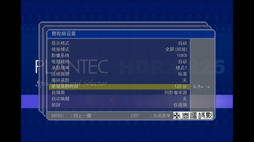 4、输入信号源调整: 根据输入端子,调整输入信号源。如果输入的是HDMI信号,根据插入的HDMI序号(1或者2),通过按信号源右边的切换按钮,调整到相应序号的HDMI蓝色信号源指示灯亮。如果是闪亮,则没有找到信号源,如果是衡亮,则已经找到信号源,说明连接正确。如果一直是闪亮状态,则要检查数字电视机顶盒是否处于正常播放状态,同时检查高清线两头的端子是否插紧,高清线是否正常联通能用。信号源灯衡亮,连接正常后,电视机会显示出机顶盒正在播放的央视五套的体育频道画面。至此,连接和设置完成。 AV、VGA输入端子信号源的调整方式与HDMI输入调整模式基本一样。只要切换到相应的输入端子信号指示灯衡亮就可以。 5、随时录像 机器面板右侧有个REC录像按钮,按一次,则可以随时录像,红色录像指示灯闪亮,移动硬盘或者U盘的指示灯也会闪亮,电视机屏幕会提示刻录已经开始,再按一次,则停止录像,屏幕提示刻录已经停止,U盘或者硬盘指示灯停止闪亮。用遥控器也可操作随时录像和停止录像。按遥控器的录画键则开始录像,按遥控器的STOP键,则停止录像。 随时录像也是可以设置录像时间长短的。进入系统菜单的系统设置的音视频设置界面,会看到有个单键录影时间,出厂时默认为120分钟,通过按遥控器的左右键可以延长或者缩短单次随时录像时间。