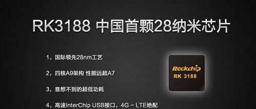 RK3188是一款性能强大的四核芯片,采用Cortex A9四核架构,28纳米制程,最高频率可以达到1.6GHz,Mali-400 MP4 GPU,,频率高达600Mhz。支持双屏显示,完美支持2048x1536分辨率。 官方宣称RK3188运算速度比Cortex-A7提升35%,另有消息称,RK3188在CPU端比Tegra 3要快30%,在GPU端比Tegra 3快40%。除了性能强劲之外,全新28nm lp工艺还带来了更低的功耗,相比45nm LP SoC低功耗工艺,新工艺性能提升55%的,功耗节省60% 。 目前采用RK3188芯片的高清播放机有春源丽影四核588F4B以及天敏四核D8,性能均十分强劲,可以播放高分辨率高码率视频以及需求更高的游戏资源。虽然该芯片系统生产成本比较高,但是其功能、性能均超过了价格偏低的诸多四核播放器;特别是在稳定性、解码速度、网络反映速度方面更胜一筹! 现在市场上倍受推崇的春源丽影四核播放器588F4B,是利用RK3188的代表性产品。