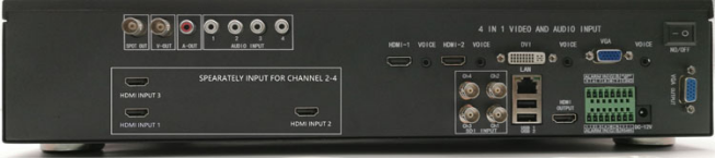 每一个视频输入口匹配一个3.5MM音频输入接口;可全选或者任选输入 |
