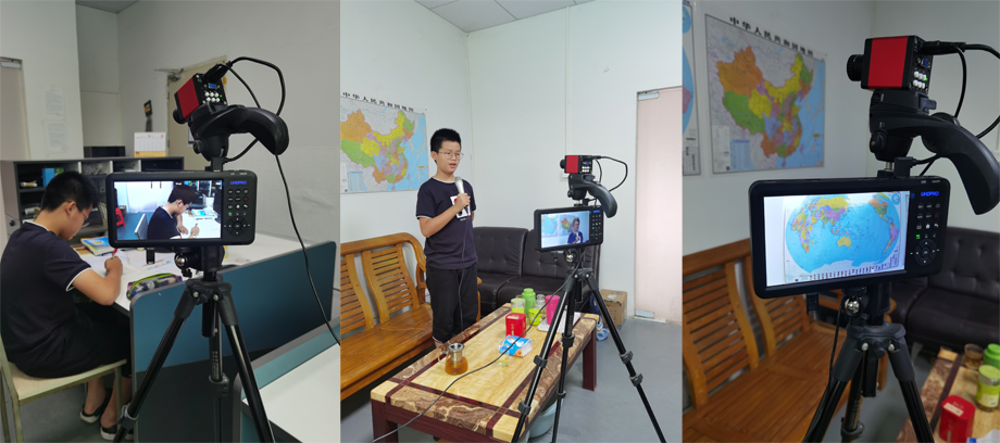 具体使用的时候,只需将摄像头固定在支架上,用HDMI高清线从LP的HDMI输出接口接入UHD-01的输入接口,接通电源即可。