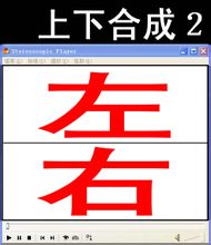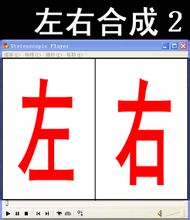 左右合成把左右两路合成一个视频的偏振格式,同时也合成了音轨。左右合成的偏振电影一般较宽的非标准格式(未必是非标准压缩),因此很多商家以分辨率骗外行人(比如1280X480的分辨率,有的商家还号称720高清,720高清分辨率是1280X720,而1280X480的左右合成格式实际上的分辨率才640X480,比DVD的分辨率还低,达不能最少的商业要求),左右合成的分辨率的算法是宽度除2,而高度不变。