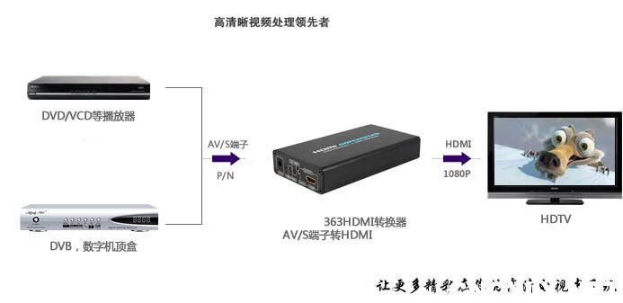 高清视频转换器,采用纯硬件处理,轻松将您的AV信号或S端子信号转换为HDMI。并且可以输出高达1080P高清视频信号。 采用最新的的处理芯片,为您带来超乎想象的稳定。可以24小时长时间不间断稳定工作。 Scaler技术带来10-bit A/D处理技术,带来超过10亿种颜色处理能力,让转换后的视频更加生动,鲜艳。而当中的优越的缩放技术,让通过SCALER的视频都平滑过渡,杜绝图像的噪点与锯齿。